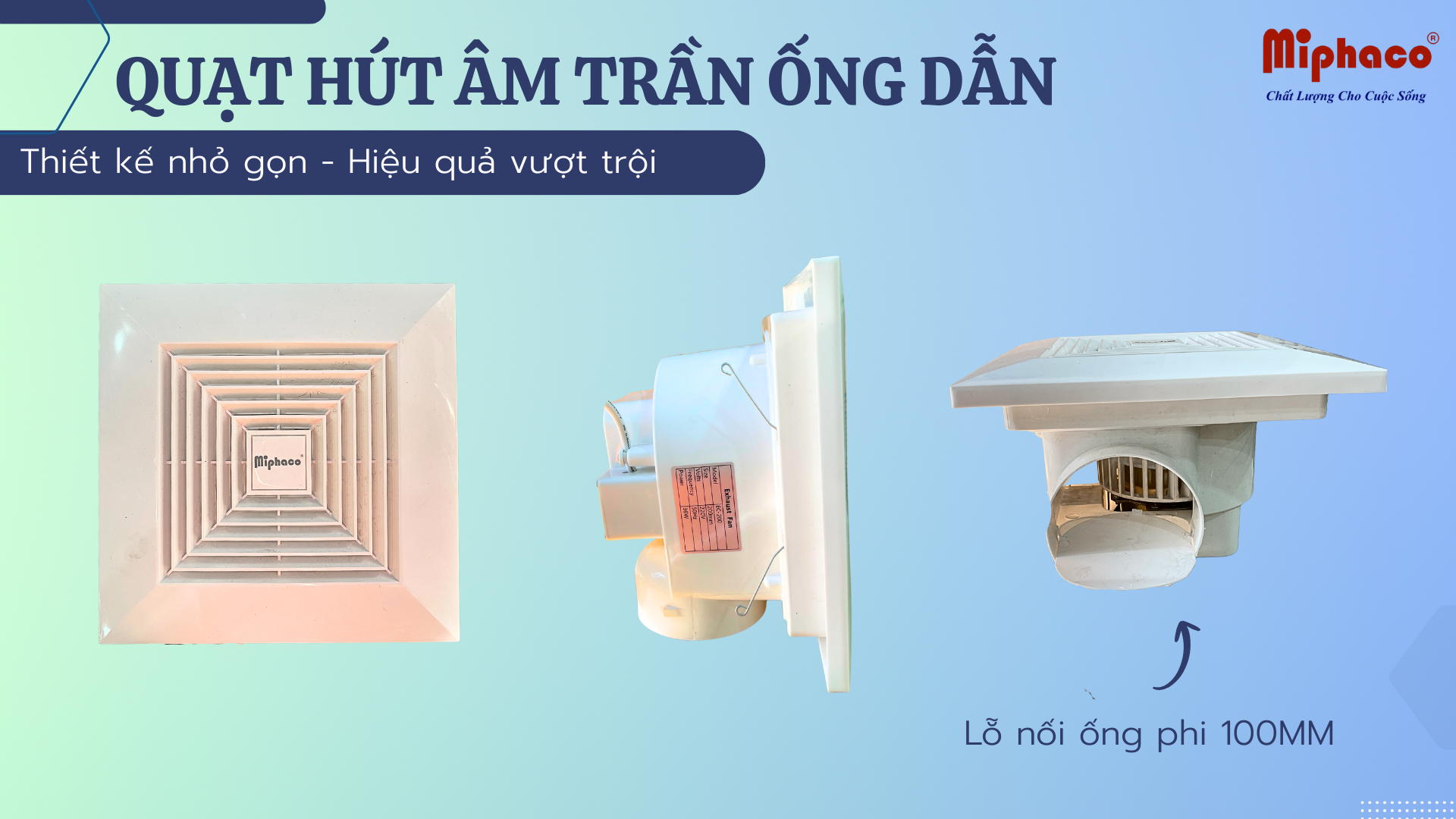 Ưu tiên hàng đầu là độ ồn thấp (dưới 35dB). Các dòng quạt hút âm trần nối ống của Miphaco là lựa chọn tuyệt vời vì động cơ vận hành cực êm, không làm phiền giấc ngủ của bạn.
